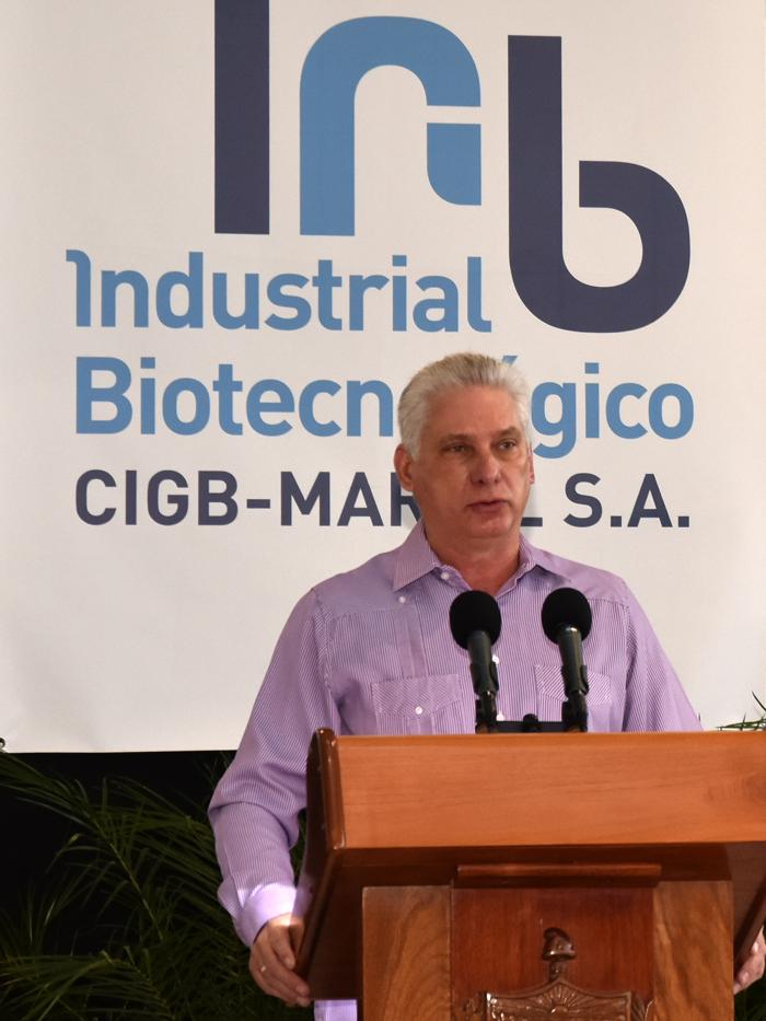 El Jefe de Estado, al hacer uso de la palabra, destacó que CIGB Mariel S.A. es fruto de una inversión diseñada por tecnólogos e ingenieros de la Isla, financiada con capital 100 % cubano, cumpliendo instrucciones del General de Ejército.