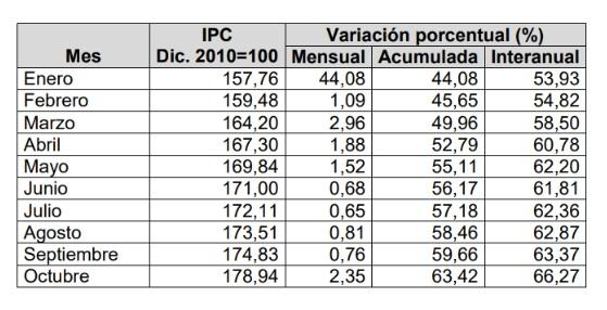 En tal sentido, acotó que el diseño de la inflación en el país era del 60%, y que, por ejemplo, en el mes de enero era del 44,1% y al cierre del mes de octubre era del 69,5%. Esto significa que, contra lo diseñado, la inflación está casi diez puntos por encima, y eso afecta directamente la capacidad de compra del salario y de las pensiones, precisó.
