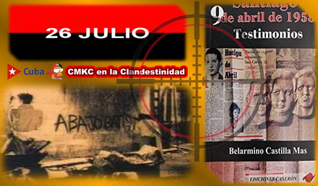 Huelga del 9 de abril. Convocada por la dirección nacional del Movimiento 26 de Julio, presidida por Fidel Castro. Protagonizada por centenares de combatientes, en su gran mayoría jóvenes obreros y trabajadores humildes, con el objetivo de paralizar a la nación y desatar un movimiento de masas que propiciara el derrumbe de la dictadura de Fulgencio Batista.